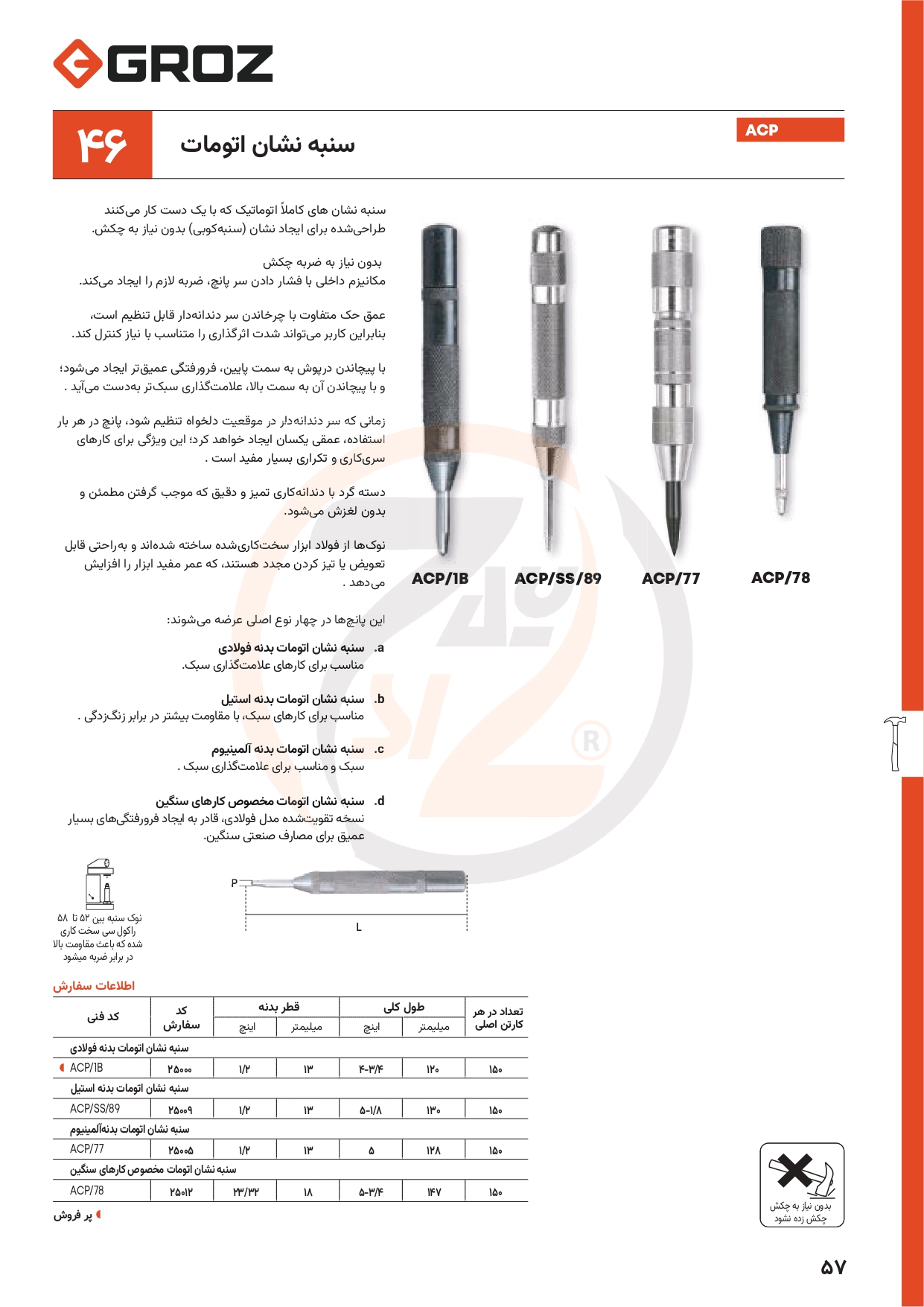 | عنوان صفحه: | سنبه نشان اتوماتیک آلومینیومی کد ACP/77 برند GROZ (گروز) |