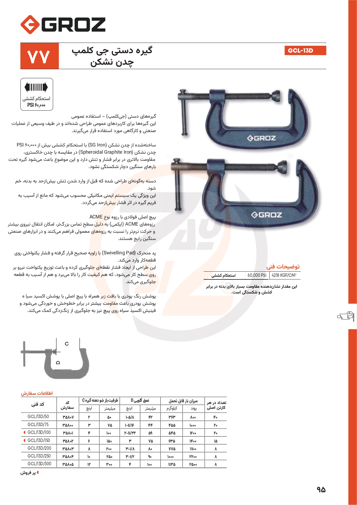 | عنوان محصول: | گیره دستی جی کلمپ سری GCL/13D برند Groz (گروز) ( در 7 سایز مختلف) |