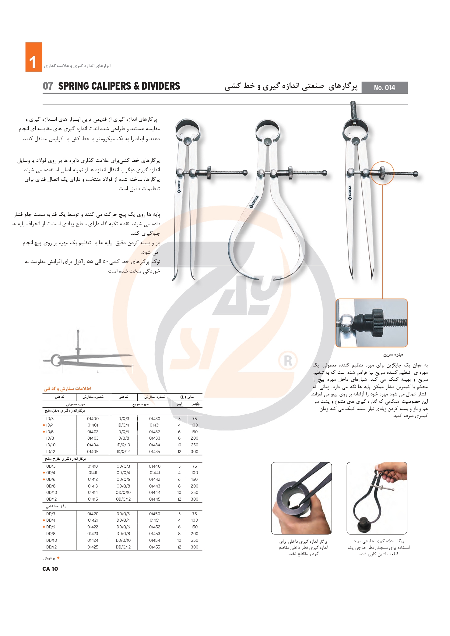 لیست پرگار خارج سنج سفید OUTSIDE SPRING CALIPERS
