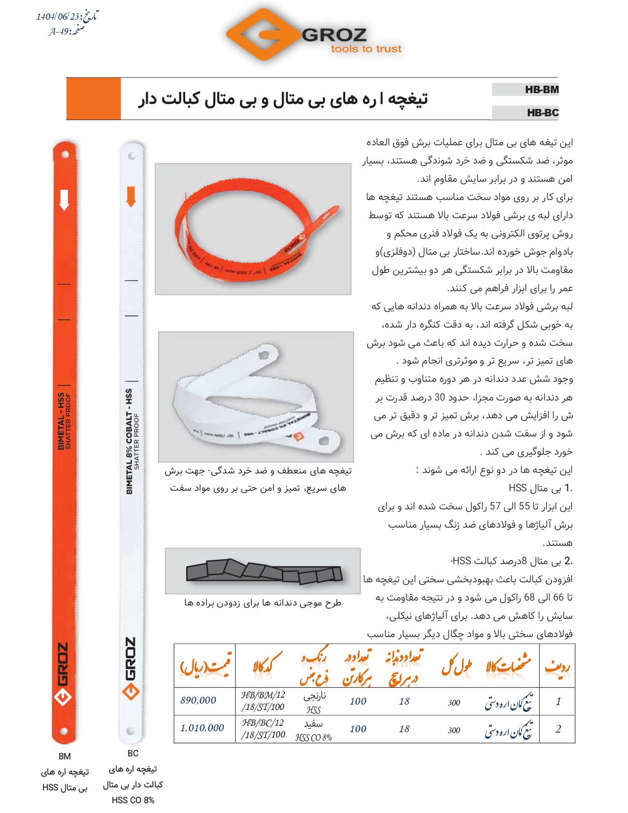 | عنوان صفحه: | تیغ کمان اره HB-BC آلیاژ HSS-CO 8% برند GROZ (گروز) |
