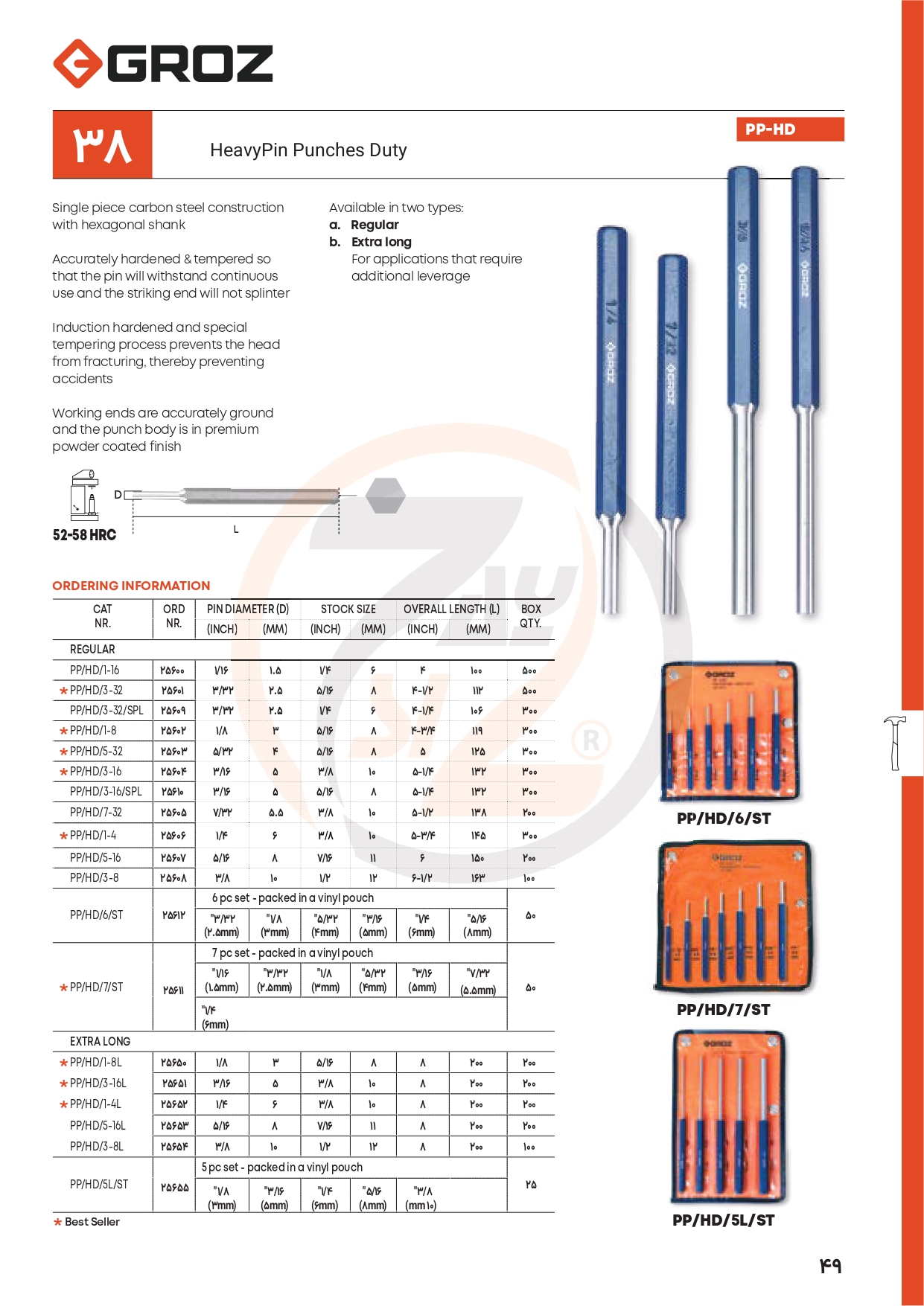 سنبه پین درار 6 میلیمتر کد PP/HD/1-4 برند GROZ (گروز)