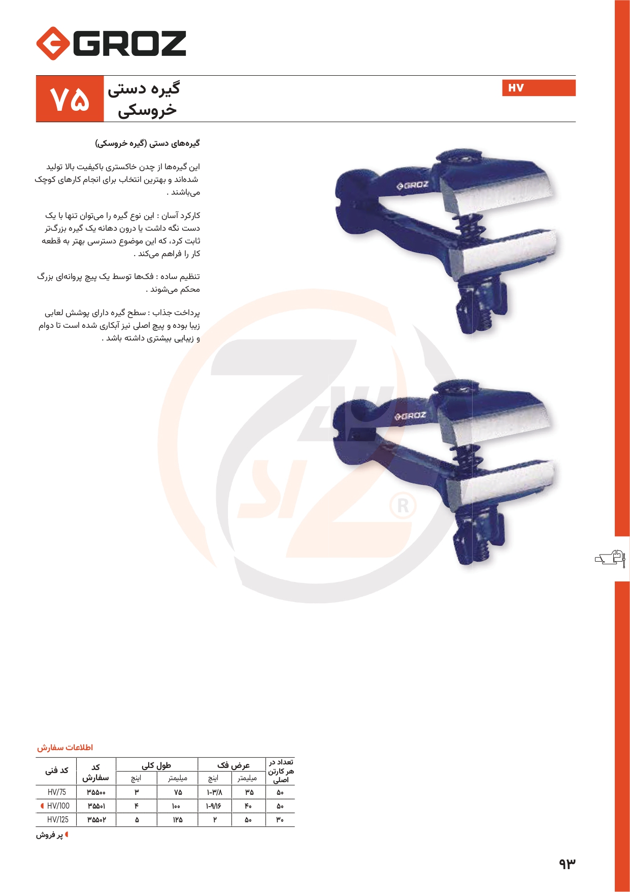 | مدل گیره: | HV/75 - HV/100 - HV/125 |