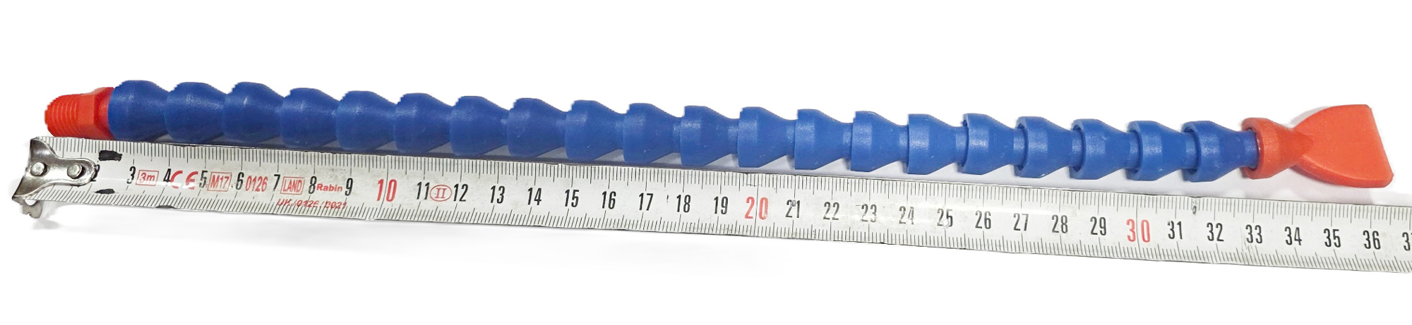 شیلنگ فوق آب صابون خور پلاستیکی بدون شیر 1/4 اینچ سر تخت (سر اردکی) با طول نزدیک به 36 سانتیمتر و سایز رزوه 12.67 میلیمتر و سایز خروجی 2.78 میلیمتر ساخت ایران.
