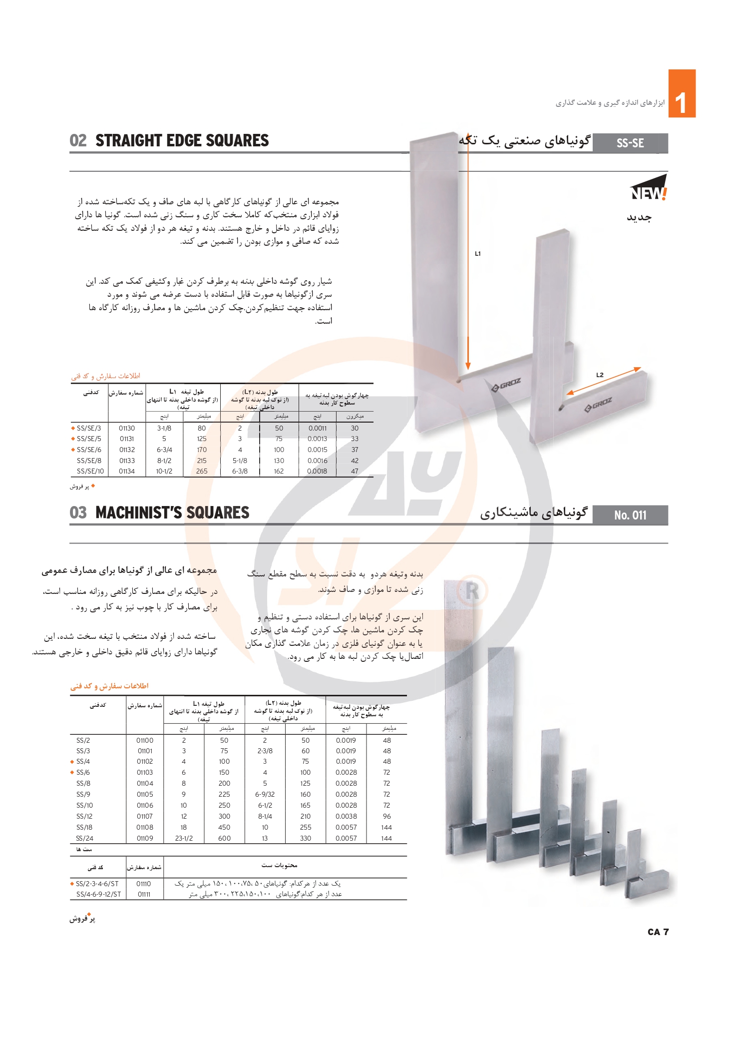 سری بی نظیری از گونیاهای دقیق فولادی که رقیب ندارند مناسب برای کارهای تنظیم کردن و بررسی های نیازمند دقت بالا تیغه های سخت شده فولادی به صورت دائمی توسط پرچ به بدنه متصل شده اند که سفتی و محکمی آن را تنظیم می کند. تیغه و بدنه هر دو با دقت سنگ زنی شده اند تا از مسطح بودن و موازی بودن آنها اطمینان حاصل شود. لبه های کار تیغه ها نسبت به یکدیگر هم پوشانی دارند تا دقت بیشتری داشته باشند.یک شیار در گوشه داخلی بدنه به پاک کردن غبار و کثیفی کمک می کند.