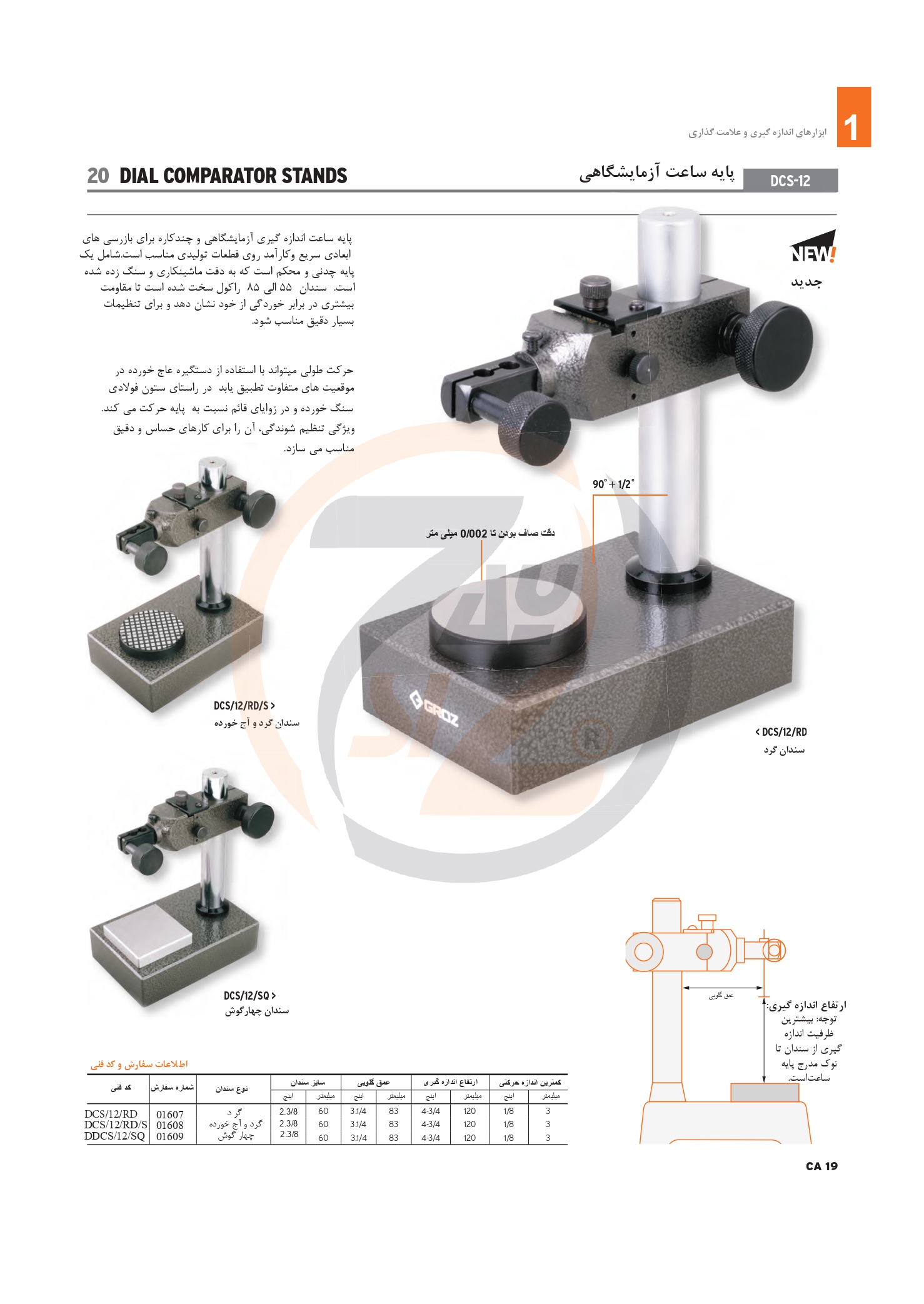 پایه ساعت فوق پایه ساعت اندازه گیری آزمایشگاهی و چند کاره خصوصا برای بازرسی های ابعادی سریع و کارآمد روی قطعات تولیدی استفاده دارد، برند پایه مقایسه فوق گروز (GROZ) سری DCS ساخت هند میباشد.DIAL COMPARATOR STANDS