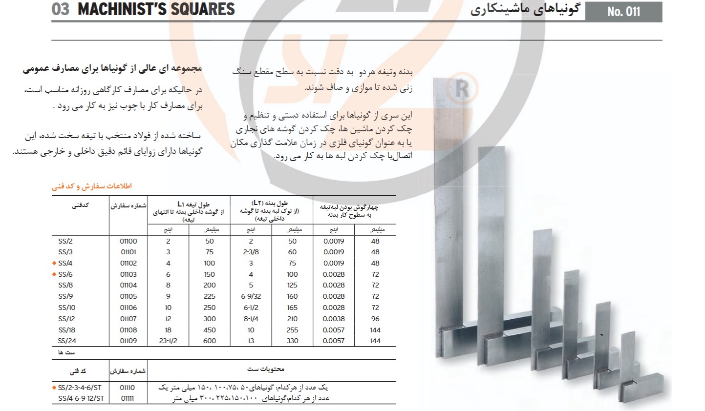 | توضیحات کوتاه محصول: | گونیای صنعتی لبه دار (ENGINEER PRECISION SQUARES) فوق سری بی نظیری از گونیاهای دقیق فولادی که رقیب ندارند. |