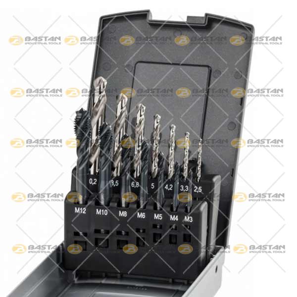 مجموعه فوق جعبه قلاویز ماشینی مارپیچ راست گرد و مته ته گرد با آلیاژ HSSE سری 9900 با تعداد 7 عدد قلاویز متریک و 7 عدد مته ته گرد میباشد.