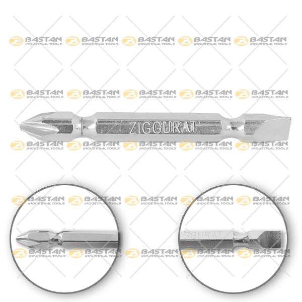 نوک پیچ گوشتی فوق از نوع دو سر یک طرف چهارسو و یک طرف دو سو متریال فولاد آلیاژی S2 با روکش کروم سایز Ph2xSL6 برند ZIGGURAT زیگورات ساخت ایران میباشد.