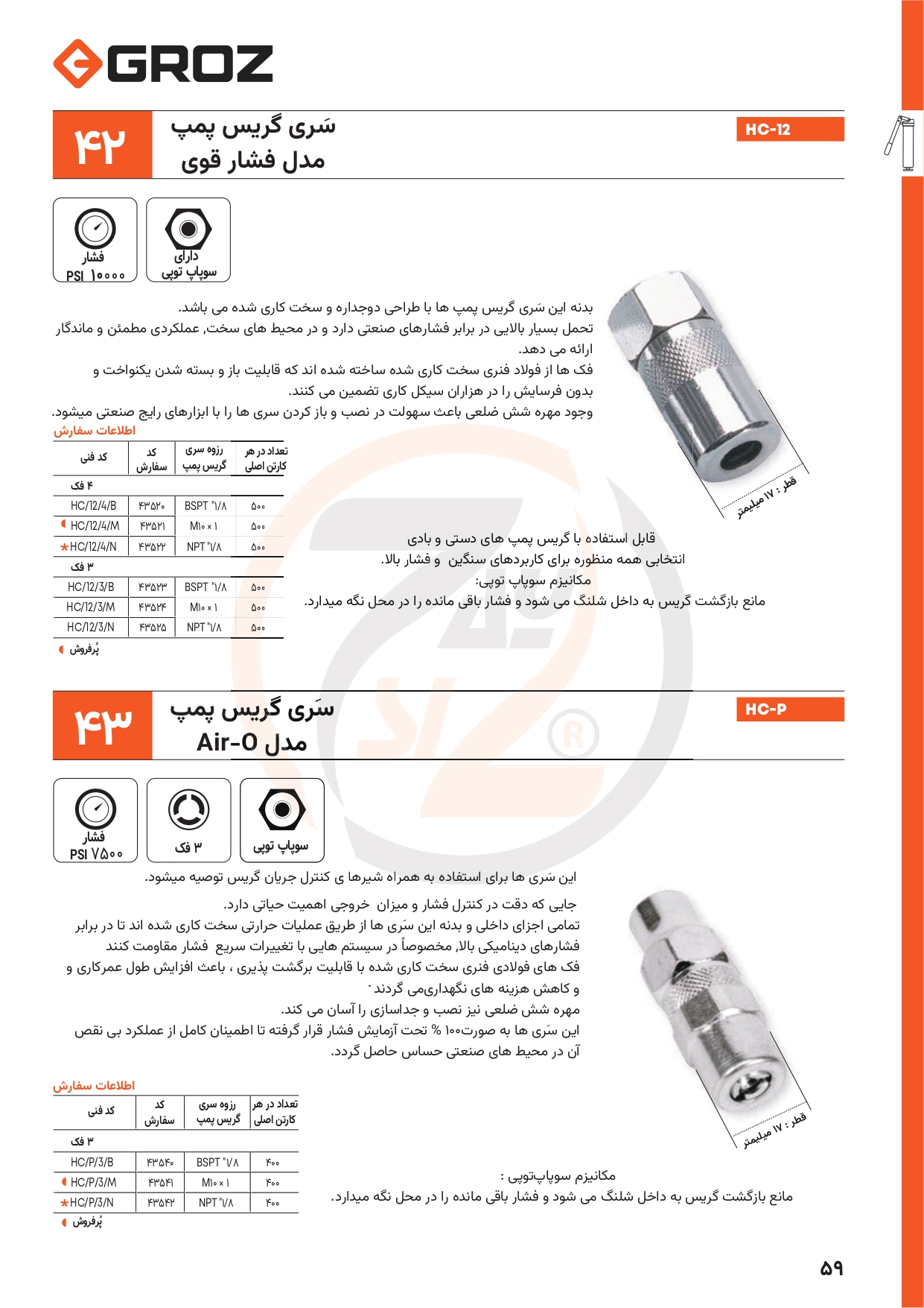 | عنوان صفحه: | سری گریس پمپ دستی فشار قوی همراه سوپاپ M10*1 برند GROZ (گروز) |
