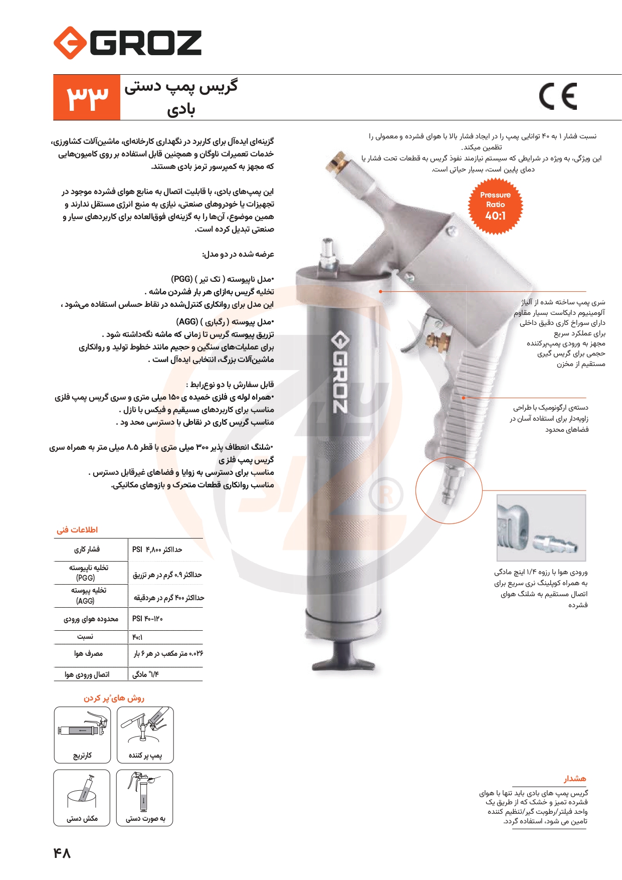 گریس پمپ دستی بادی 500cc نسبت 1 به 40 پیوسته GROZ (گروز)