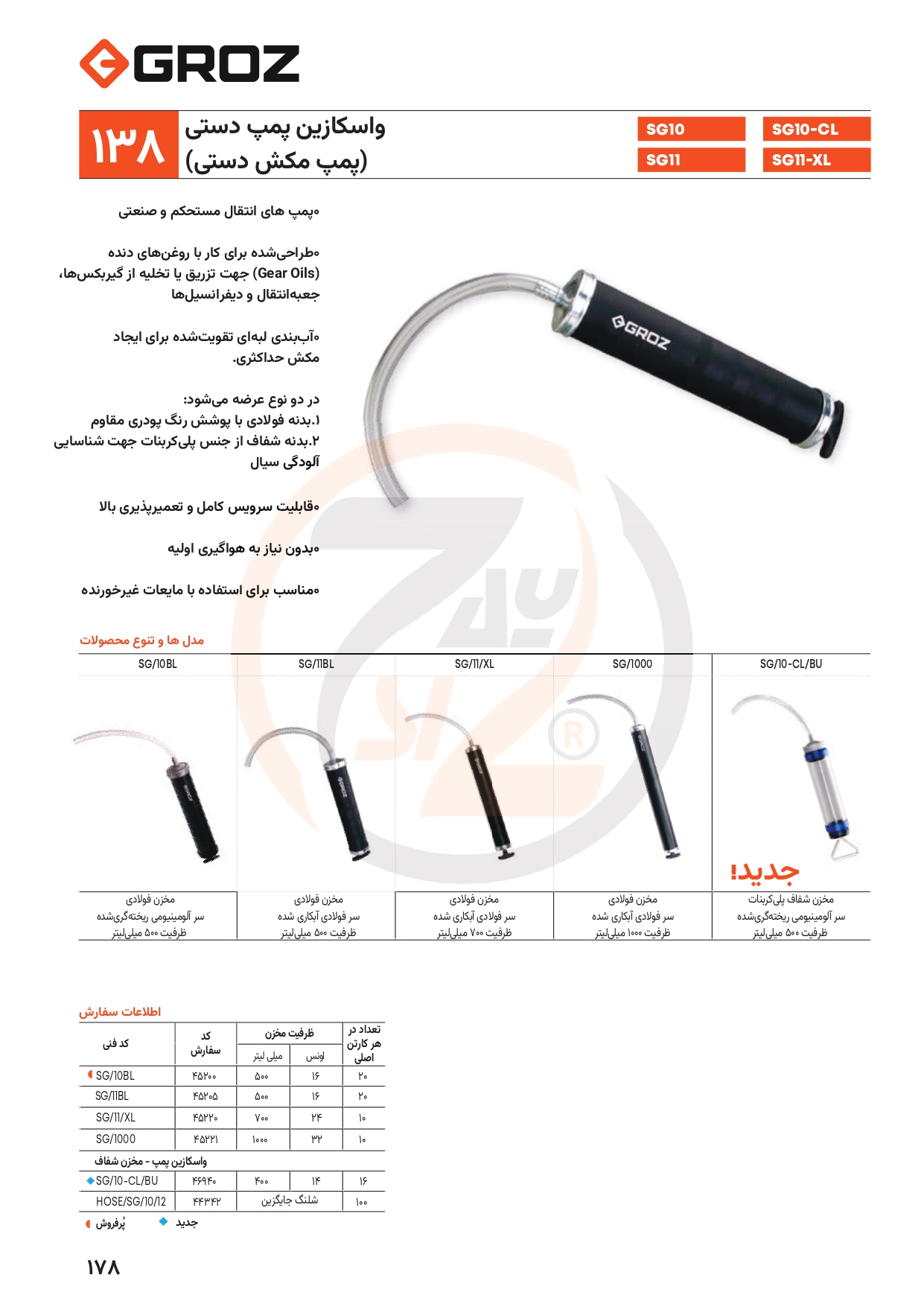 | عنوان صفحه: | واسکازین پمپ دستی 500cc سر فولادی GROZ (گروز) |