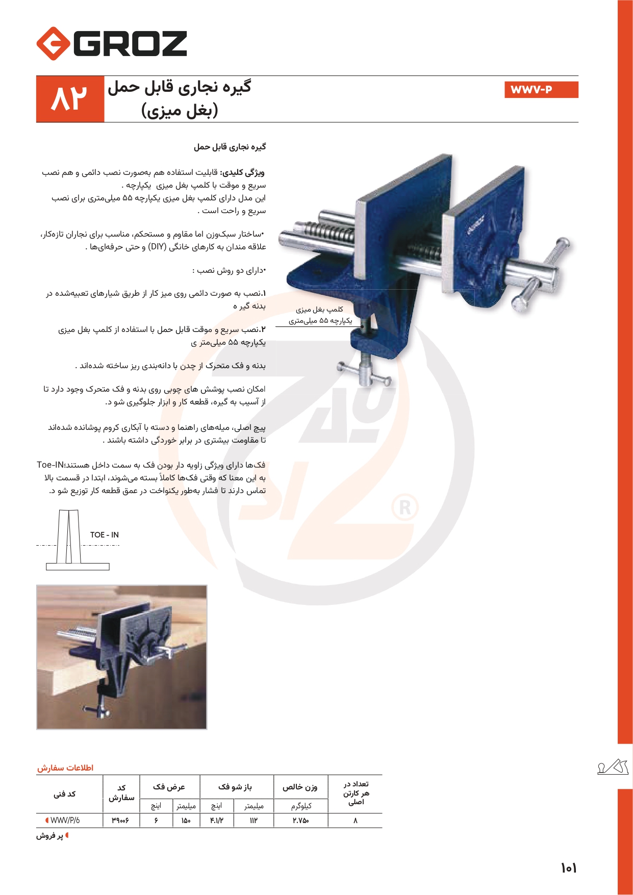 | عنوان محصول: | گیره رومیزی چوب قابل حمل GROZ (گروز) سری WWV/P/6 |