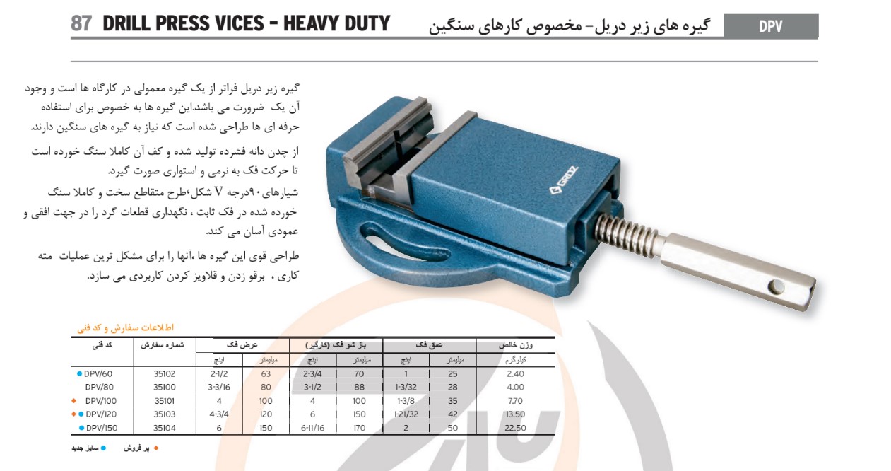| گیره زیر دریل | 12 سانت | 15 سانت | 4.2 سانت | 13.5 Kg | DPV/120 |