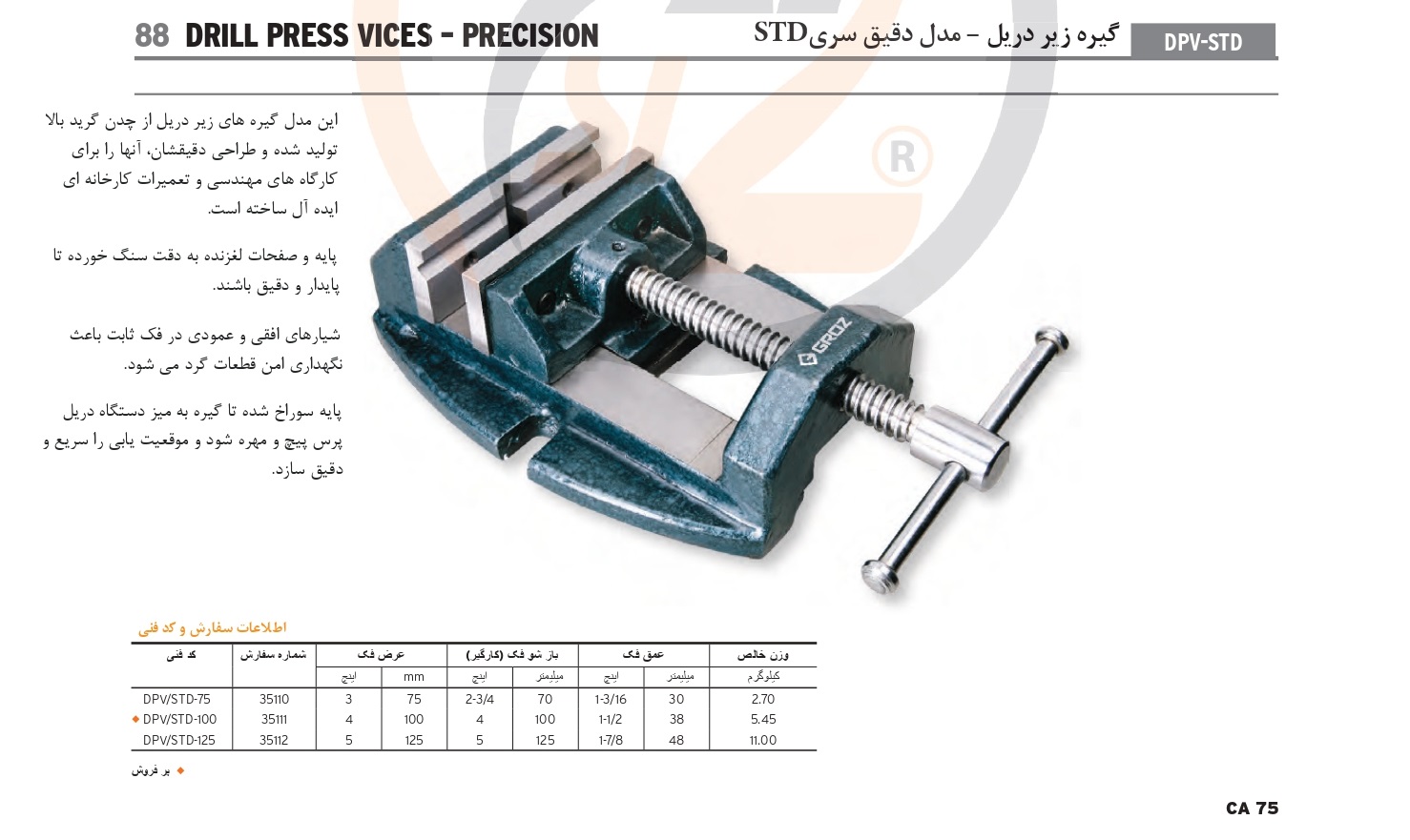 | گیره زیر دریل | 7.5 سانت | 7 سانت | 3 سانت | 2.7 Kg | DPV/STD-75 |
