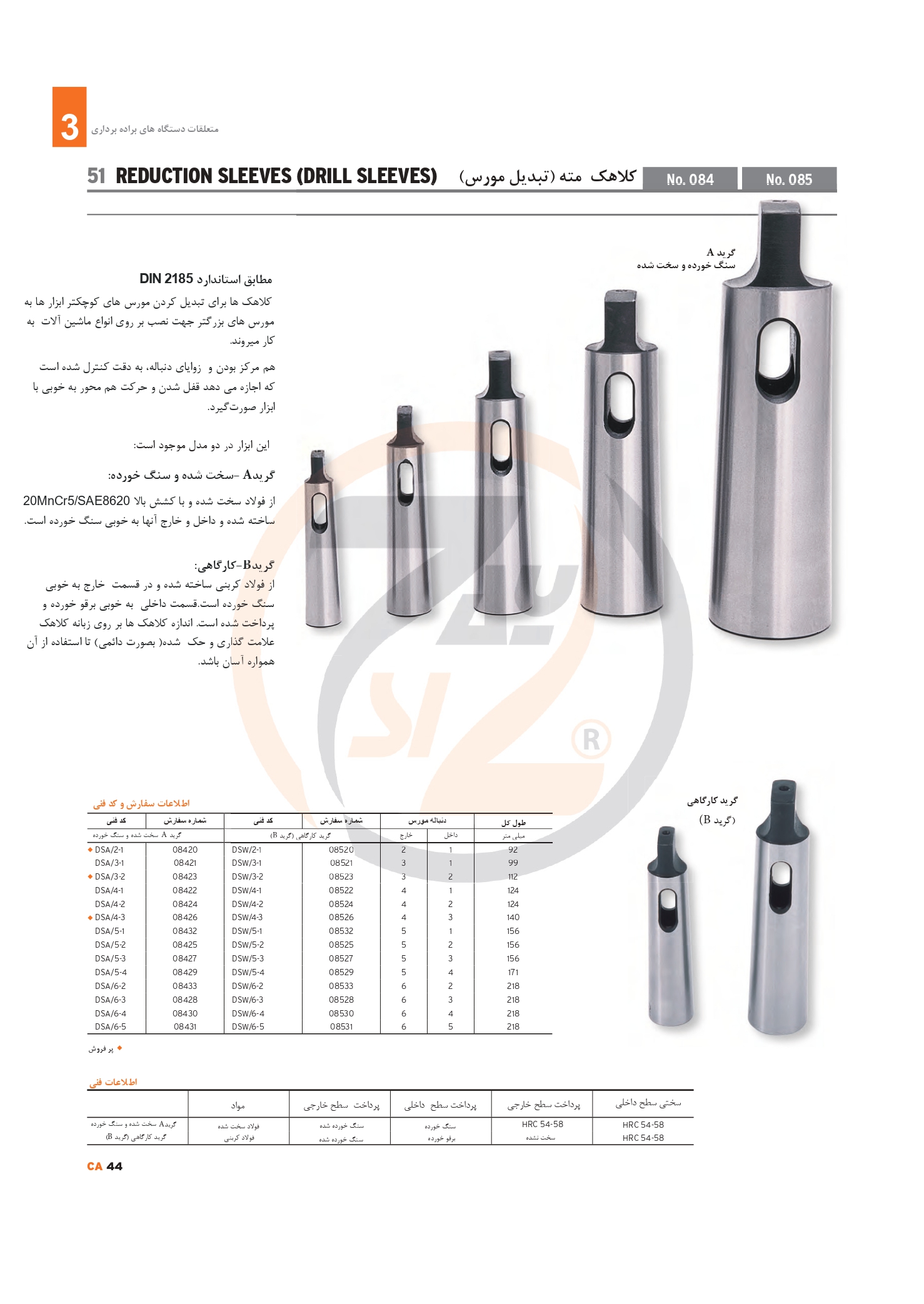 لیست کلاهک گروز (تبدیل مرس) گرید REDUCTION SLEEVES(DRILL SLEEVES)-A GRADE A