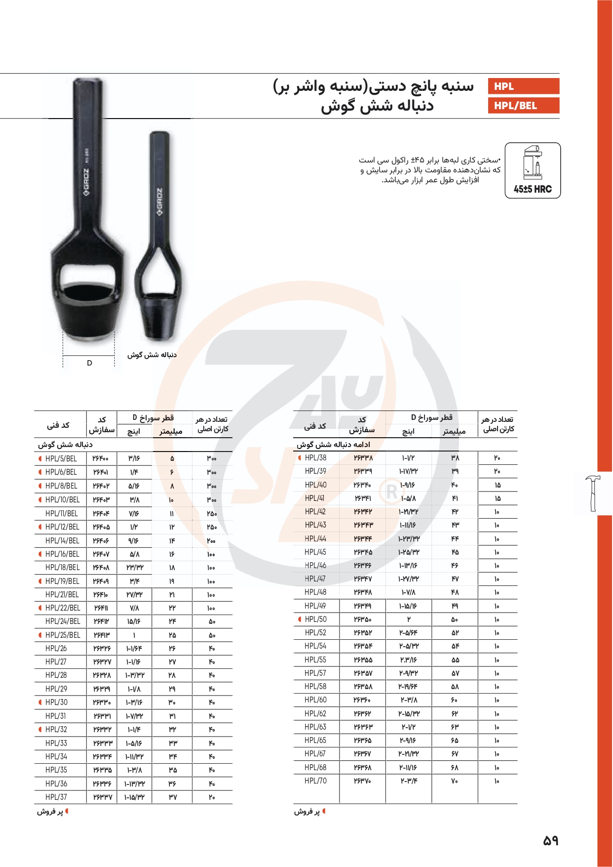 | سنبه پانچ(واشر درآر) | 46 میلی متر | HPL/46/BEL |