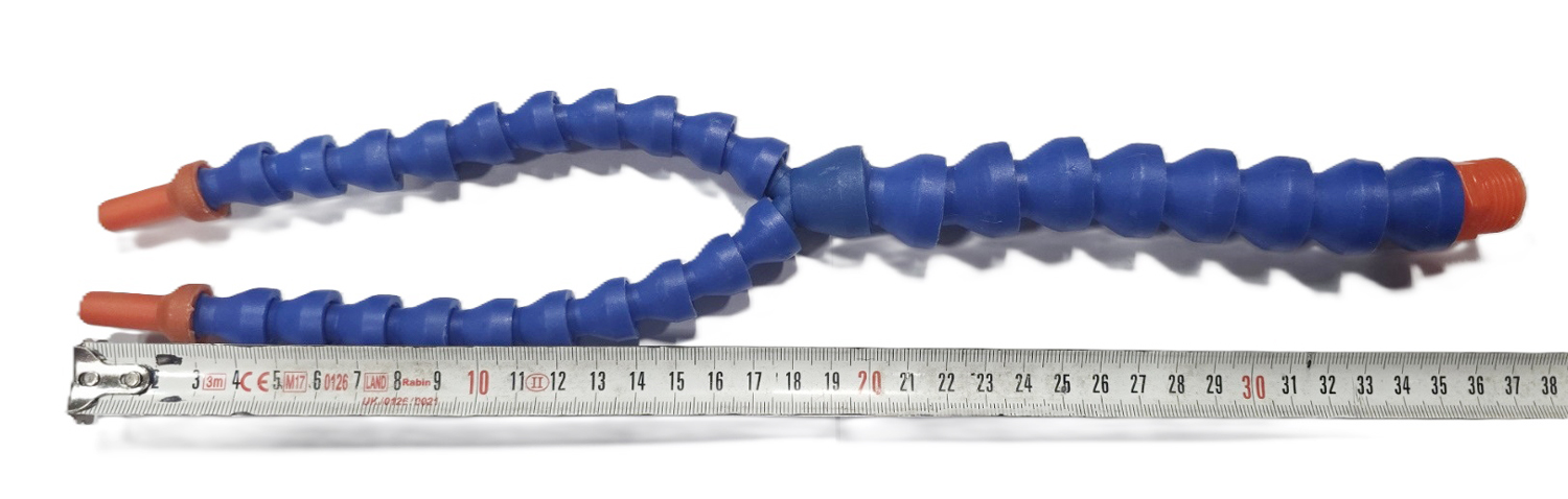 جهت خنک کردن قطعه در دستگاه تراش CNC (سی ان سی) از شلنگ آب صابون استفاده میشود، شلنگ آب و صابون مایع خنک کننده را بر روی قطعه انتقال میدهد و باعث پایین آوردن دمای قطعه حین انجام عملیات تراشکاری میشود، این شیلنگ به شیر تنظیم کننده خاصی مجهز شده اند تا بتوانند فشار آب صابون را کنترل کرده و همچنین مسیر جریان می تواند در جهات مختلف تغییر نماید