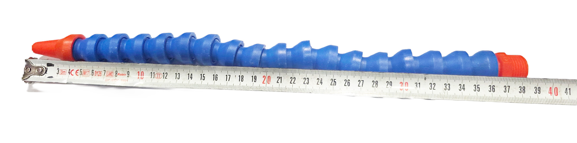 شیلنگ فوق آب صابون خور پلاستیکی همراه با شیر 1/2 اینچ با طول نزدیک به 39 سانتیمتر و سایز رزوه 20.65 میلیمتر و سایز خروجی 8.21 میلیمتر ساخت ایران.