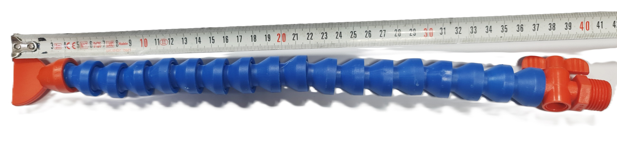 جهت خنک کردن قطعه در دستگاه تراش CNC (سی ان سی) از شلنگ آب صابون استفاده میشود، شلنگ آب و صابون مایع خنک کننده را بر روی قطعه انتقال میدهد و باعث پایین آوردن دمای قطعه حین انجام عملیات تراشکاری میشود، این شیلنگ به شیر تنظیم کننده خاصی مجهز شده اند تا بتوانند فشار آب صابون را کنترل کرده و همچنین مسیر جریان می تواند در جهات مختلف تغییر نماید